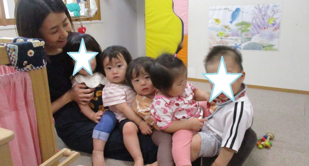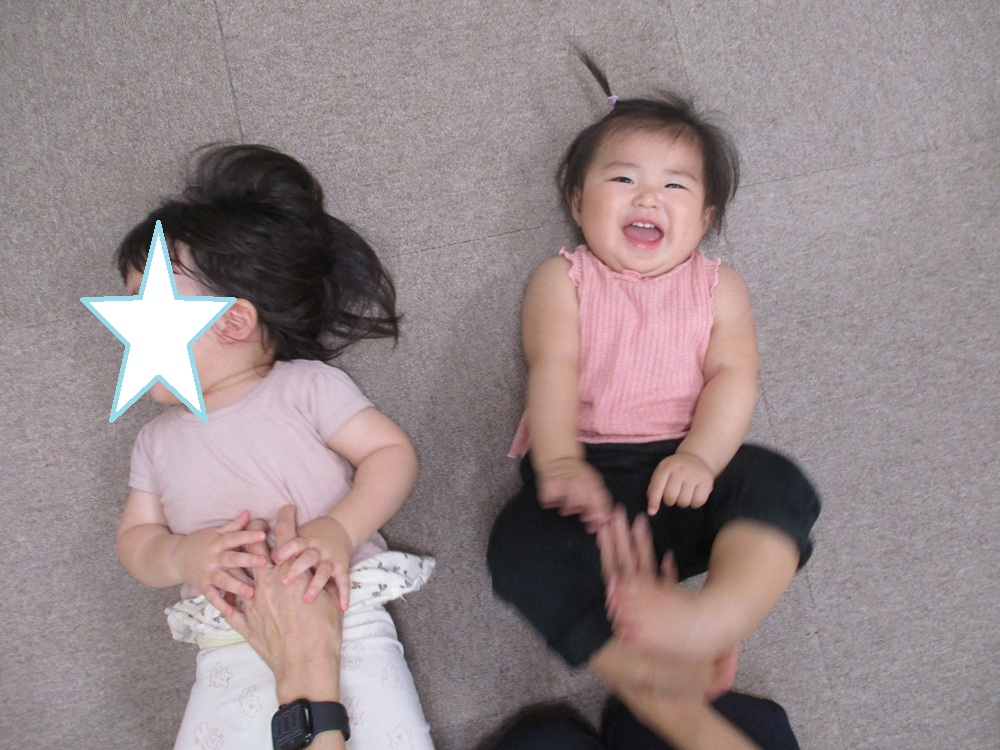 わらべ歌にあわせて、スキンシップを図りながら行います。
