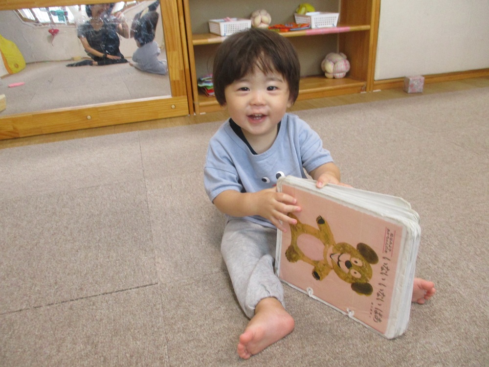 大好きな絵本もみつかり、出てくるフレーズにあわせて、「ばあ💛」
