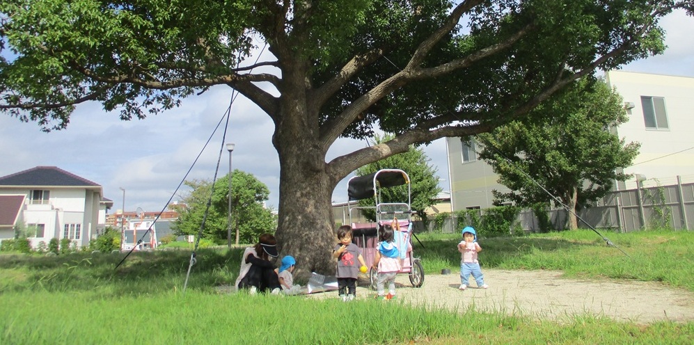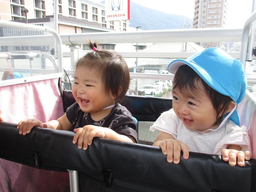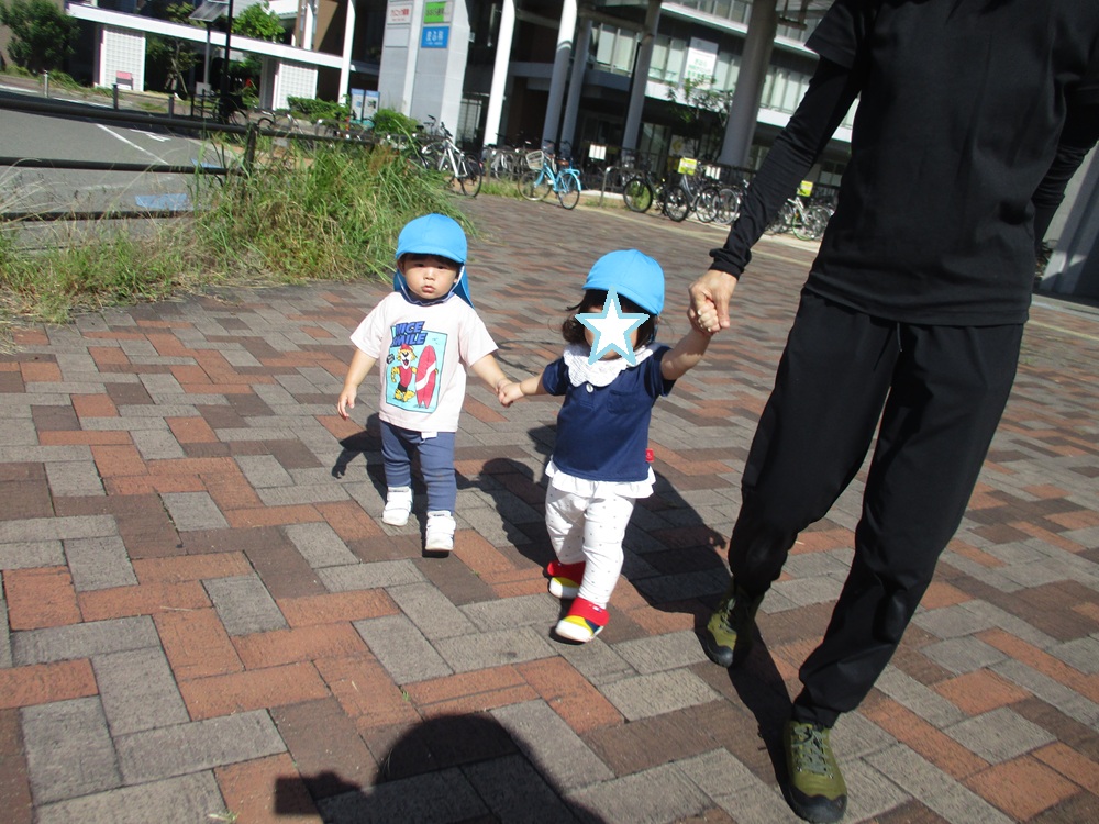お散歩カーと歩くお友達を交代しながら、一人一人のペースに合わせて、出かけています🎵