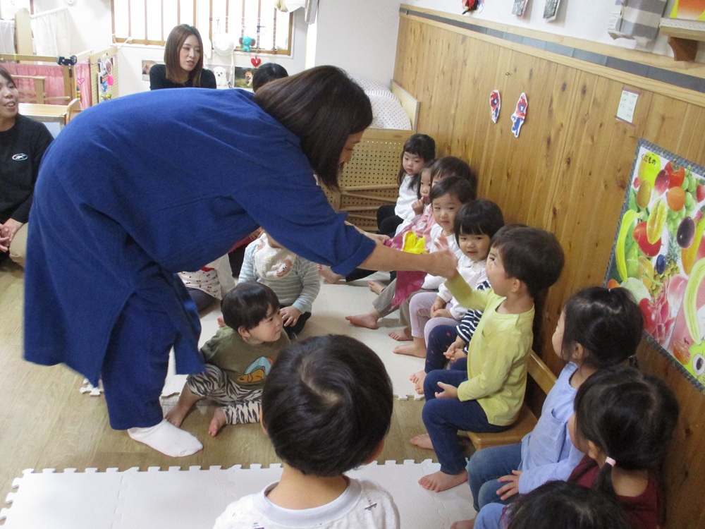「うんとこしょ、どっこいしょ」とみんなでつるを引っ張って、何が出てくるかな?と、