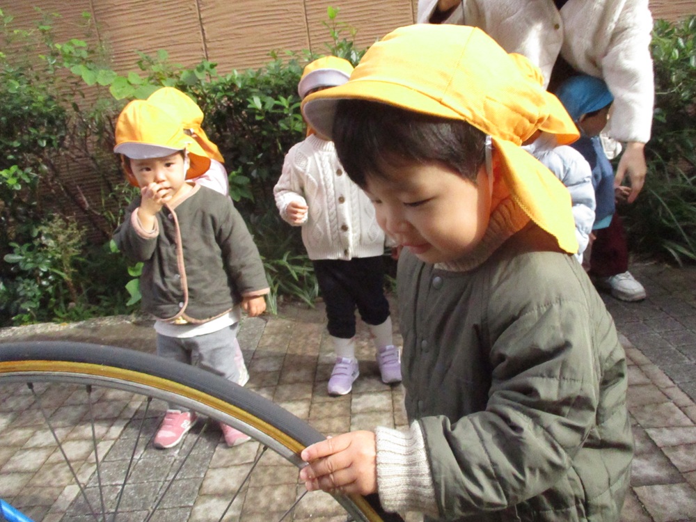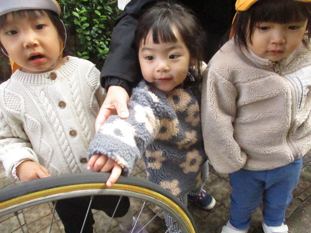 自転車のタイヤやヘルメットも触らせてくれました!!