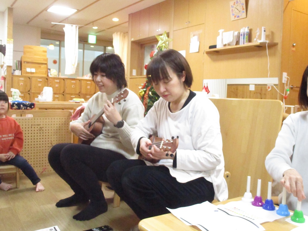 ハンドベルとウクレレと歌のコラボでの演奏でした☆